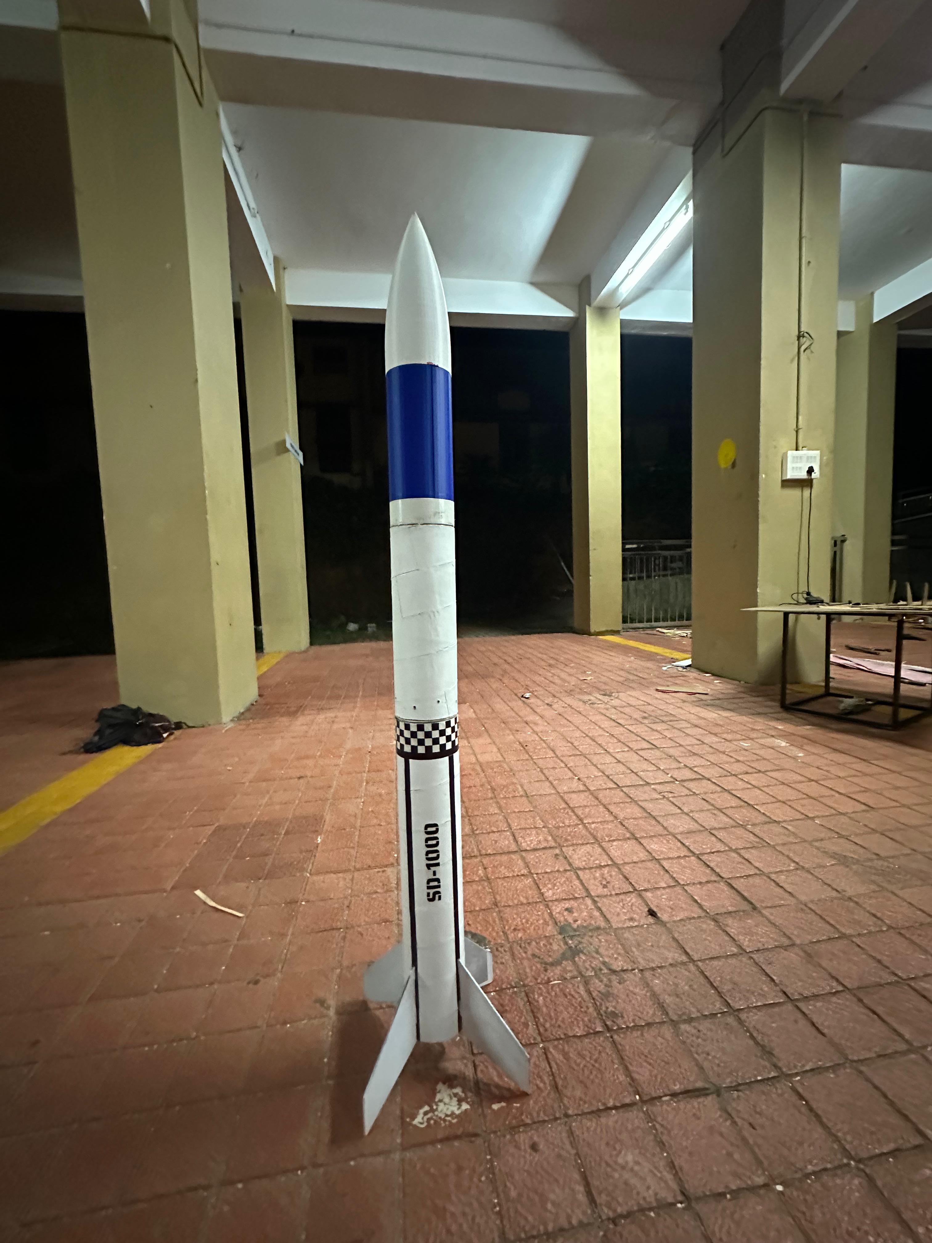 Our first model rocket project, aiming for 1km altitude with 1kg payload capacity.